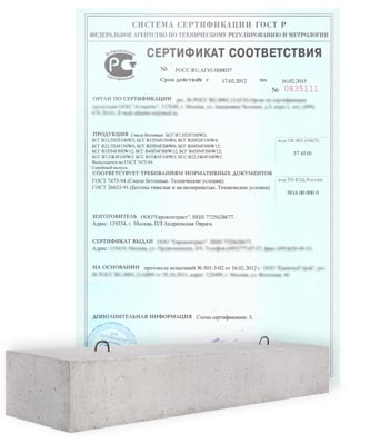 Сертификат на бетон – главный документ, подтверждающий соответствие свойств этого строительного материала тем, что заявлены производителем. Речь идет об основных эксплуатационных характеристиках – водонепроницамости, прочности, морозостойкости. Сертификация такого строительного материала является обязательной и подлежит декларированию. Качество продукции подтверждает сертификат соответствия бетона требованиям ГОСТа, стандартам ISO или техническим условиям предприятия. Наличие такого документа говорит об ответственности производителя и повышает конкурентоспособность продукции.