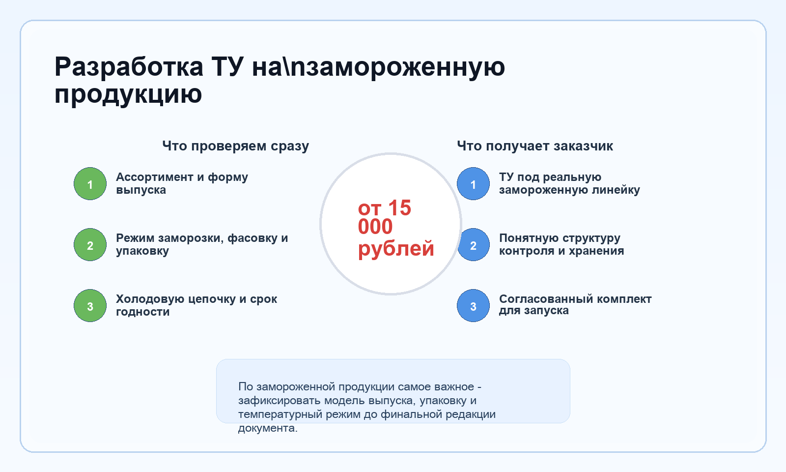Собираем ТУ под замороженную линейку: состав, предварительную подготовку, шоковую заморозку, фасовку, хранение и маркировку.